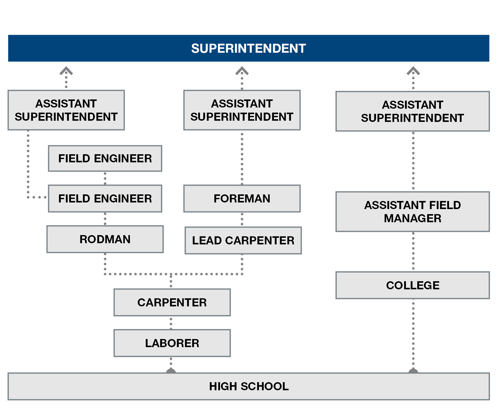 Assistant Field Managers (AFM) typically start out as a co-op or intern in our College Student Program and are Superintendents in Training. Our Student program gives you hands-on experience and a solid understanding of our company. AFM’s perform a wide range of duties to assist with development of the skills needed to be a Superintendent.