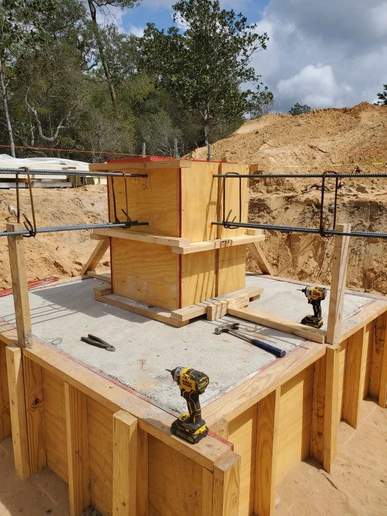 The temporary mold where ready-mix is placed to shape concrete elements.